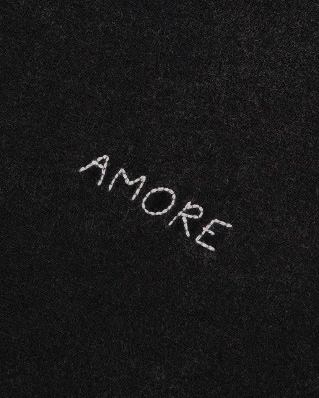 Crafted from 100% organic cotton, the T-shirt features a unique carbon-washed finish, giving it a subtle, vintage-inspired look. The lightweight fabric ensures exceptional comfort, while the neckline is finished with edge-to-edge glueing for a refined appearance. The crisp white "Amore" embroidery adds a striking contrast and a touch of personality.